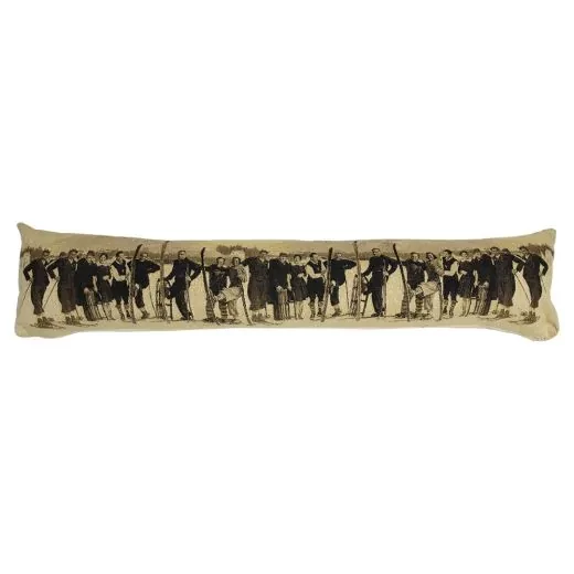 Très joli boudin de porte en noir et blanc (sépia) de la collection Gobelin sur le thème des sports d’hiver..Bienvenue à la montagne avec ces skieurs vintage !