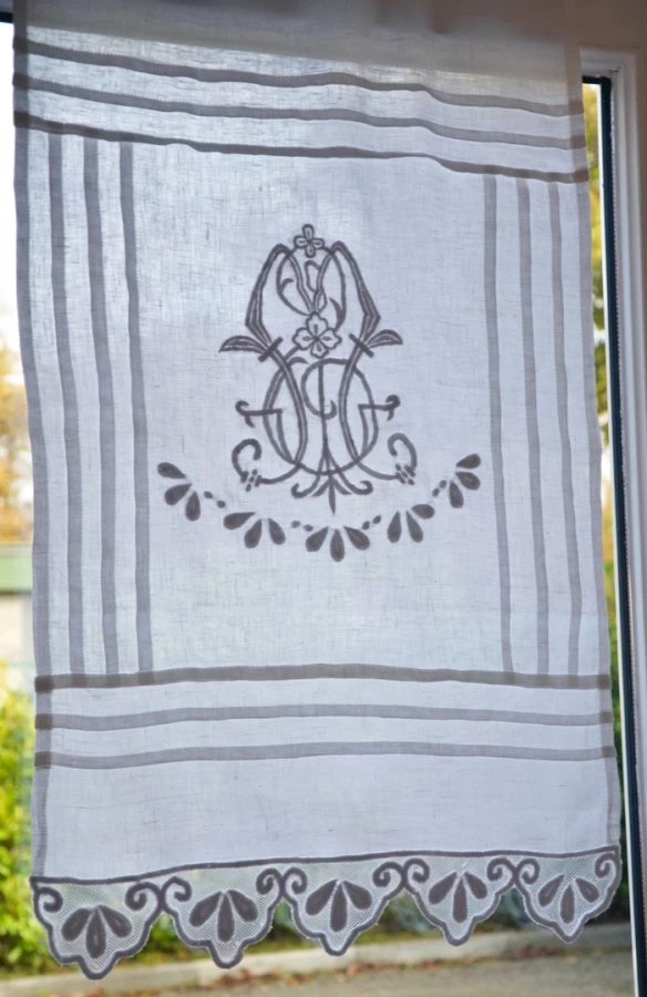Joli brise-bise en voile de lin blanc proposé par la maison Coquecigrues.