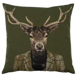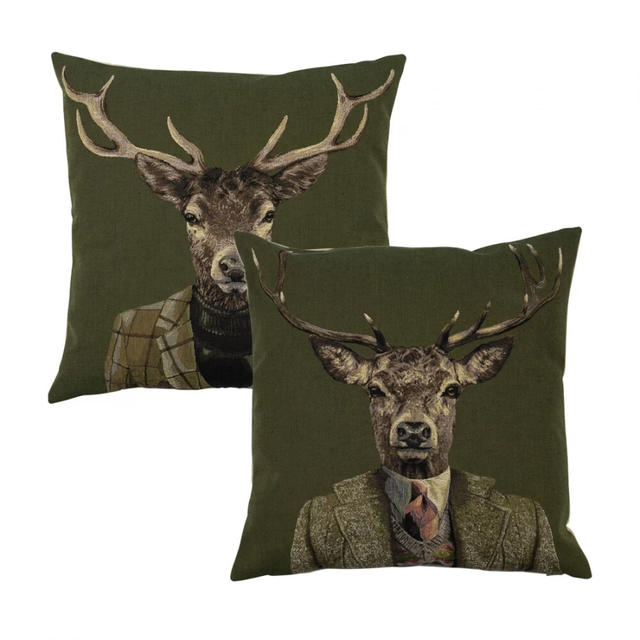 2 Coussins Gobelin Vert Cerf Col Roulé 45×45