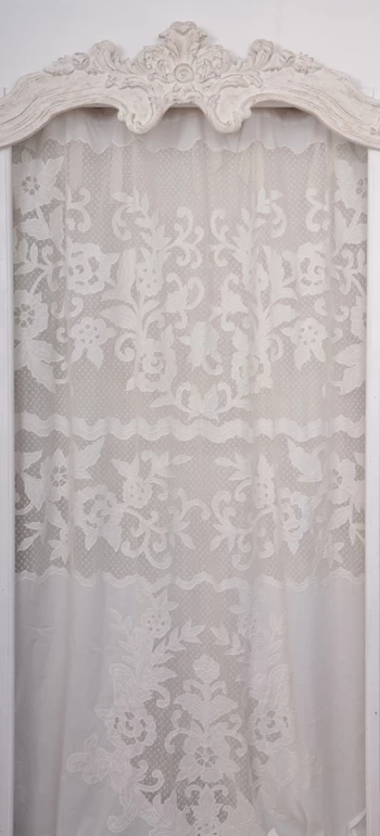 Très gros travail sur ces rideaux entièrement brodés. Le style Shabby Chic est très bien mis en lumière par la célèbre maison Coquecigrues qui en a fait sa spécialité. Magnifique !