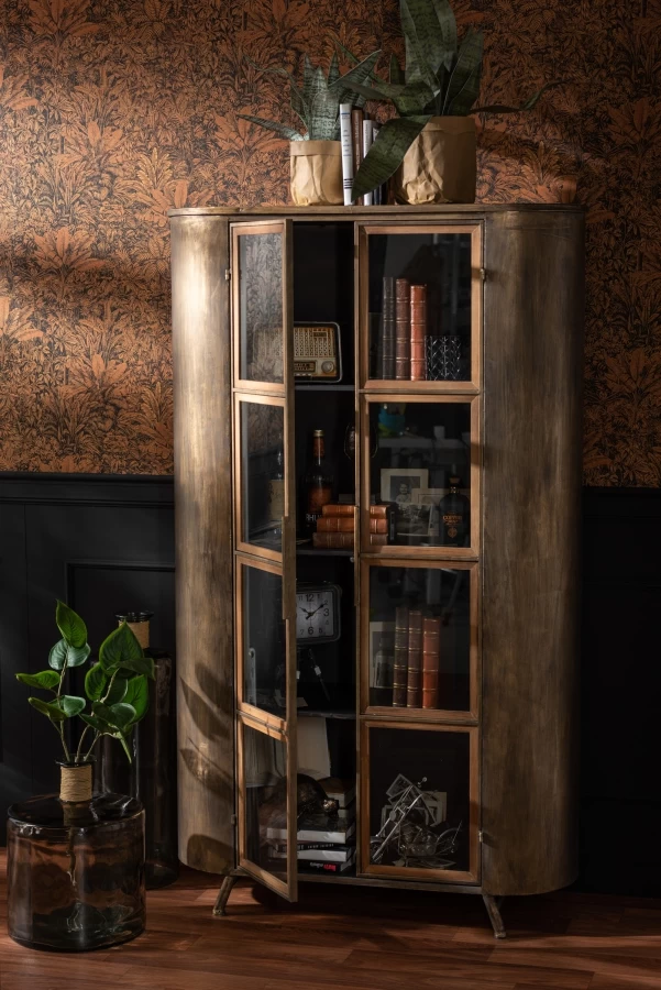 Armoire 2 Portes Vitrées Métal Doré Antic Jolipa