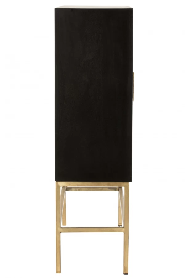 De nombreuses possibiltés d’amménagement pour ce très meuble en bois de manguier noir sur piètement métal doré.