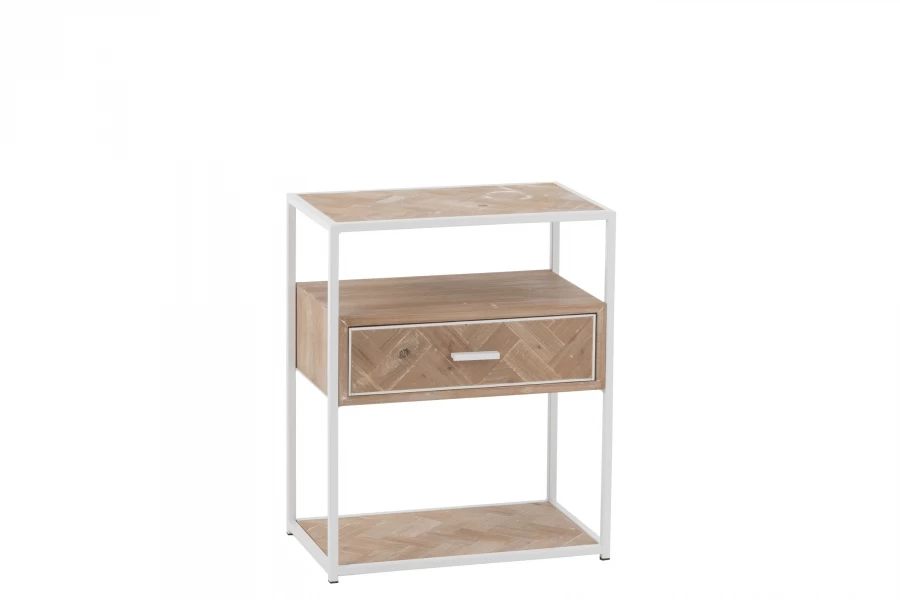Bout de Canapé Bois Métal Zig Zag Naturel Blanc