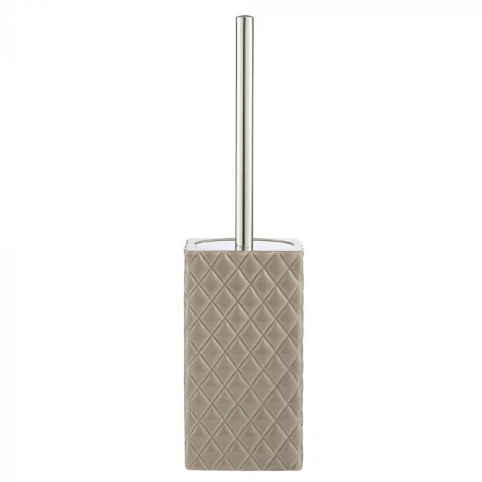 Pot en céramique de couleur marron exclusif avec un design arlequin et un couvercle en zinc argenté avec sa brosse au manche assorti.