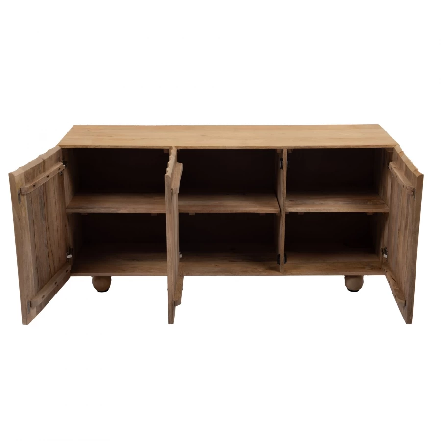 Ce buffet est entièrement réalisée en bois naturel avec un piètement 4 pieds ronds. Ce buffet propose 3 portes ouvrant sur 1 grande étagère
