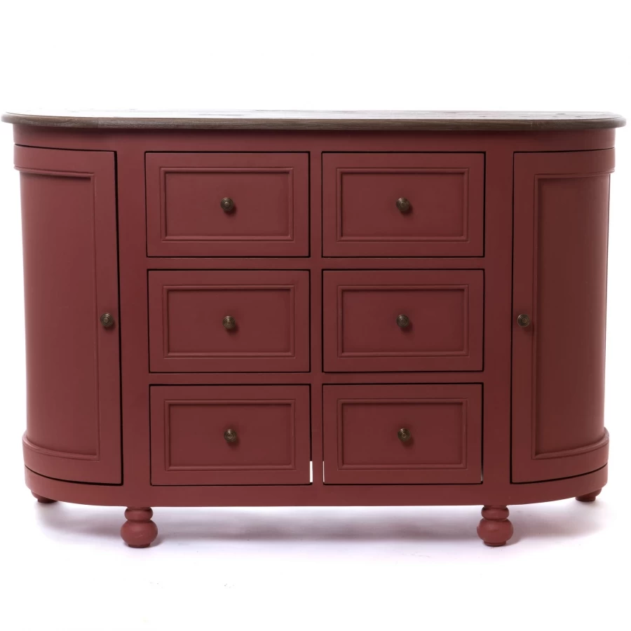 Nouveau buffet bas arrondi de la collection Bohème. Réalisé entièrement en bois ce buffet propose 6 tiroirs et de portes ouvrant sur 1 étagère.
