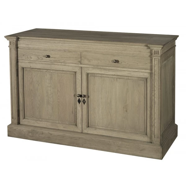 Pour apporter la touche campagne chic à votre intérieur voici le magnifique buffet bas de la collection Hausmann. Réalisé en chêne massif ce buffet propose 2 portes ouvrant sur 1 étagère et 2 tiroirs pour le rangement.