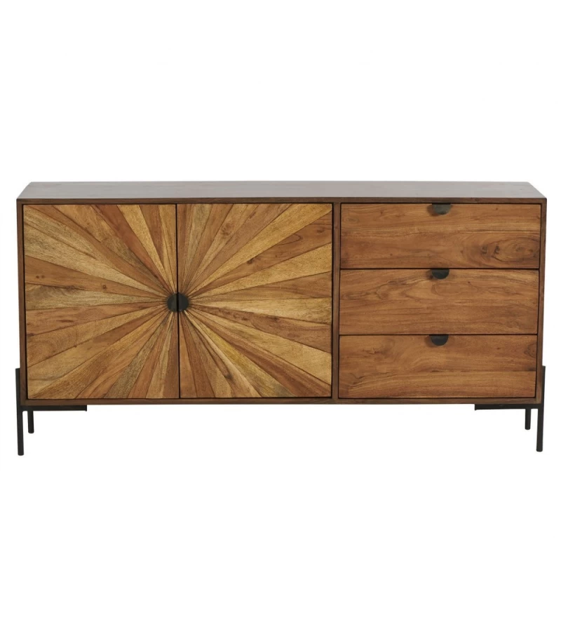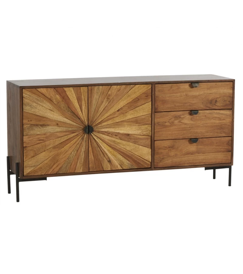 Buffet Bas Bois 2 Portes 3 Tiroirs Surate Athezza