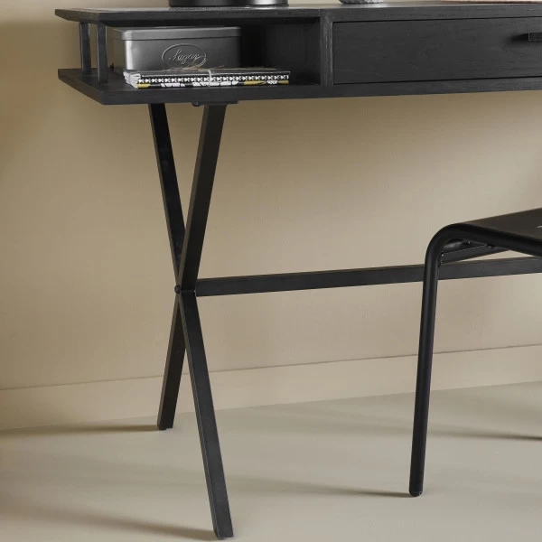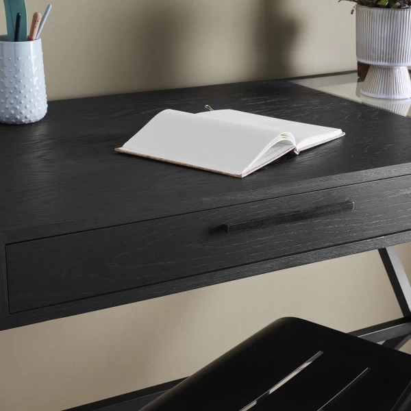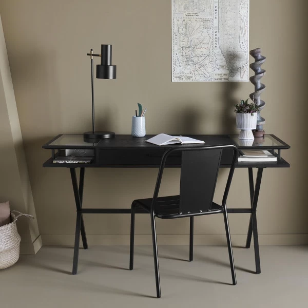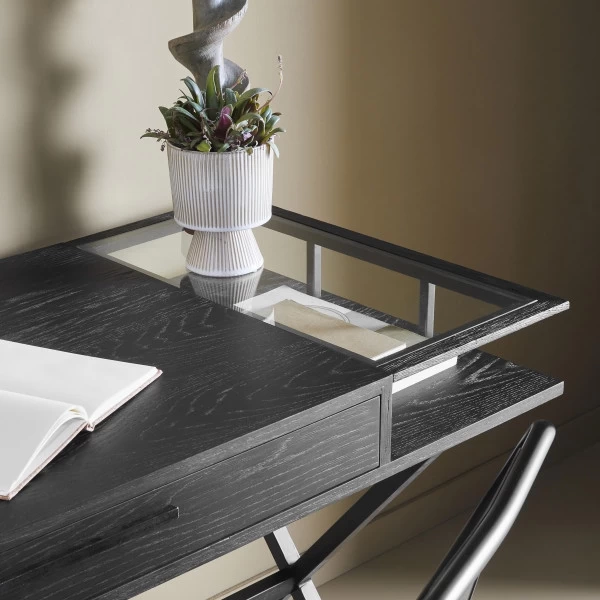 Bureau Balch Noir Chêne Massif Verre