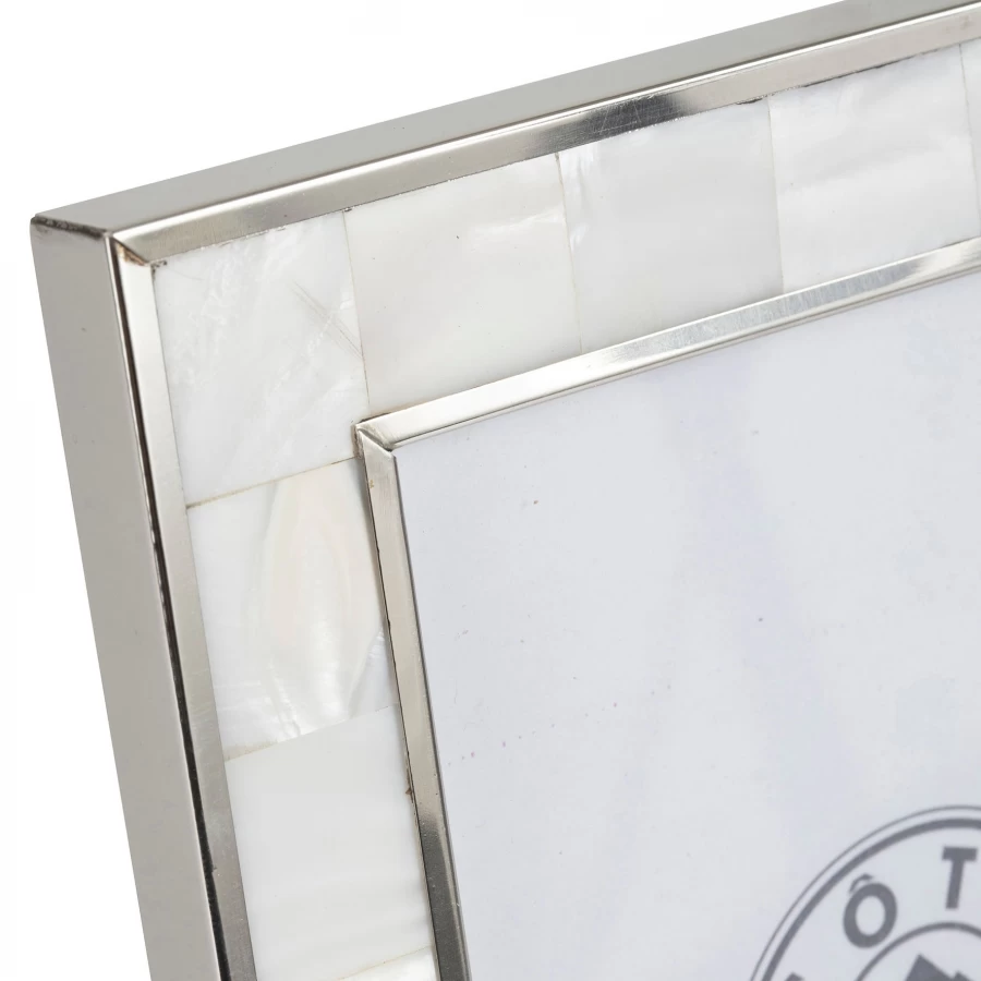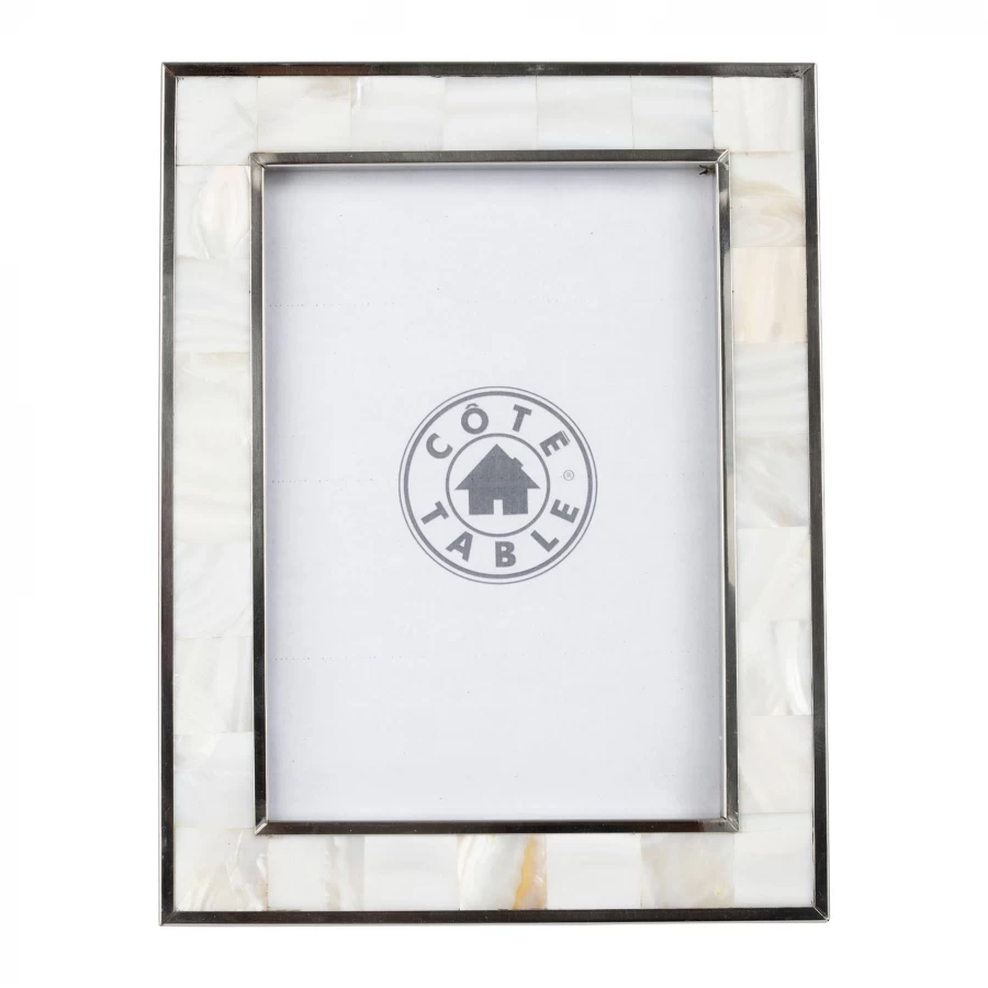 Cadre photo vertical ou horizontal réalisé en métal argenté et belle imitation nacre blanc. Cadre aux dimensions d’une photo 13*18.