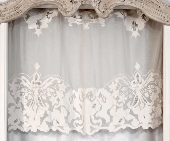 Magnifique cantonnière en coton entièrement brodée de la collection Libellule pour un intérieur Shabby Chic signé Coquecigrues.