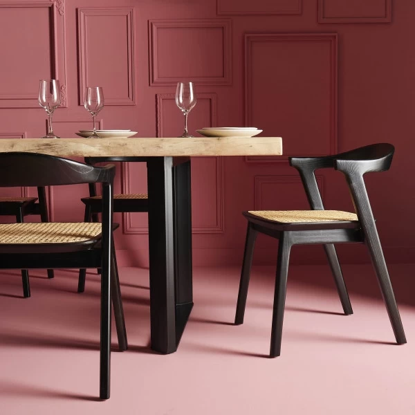 Chaise Ingrid Noire Assise Rotin Naturel