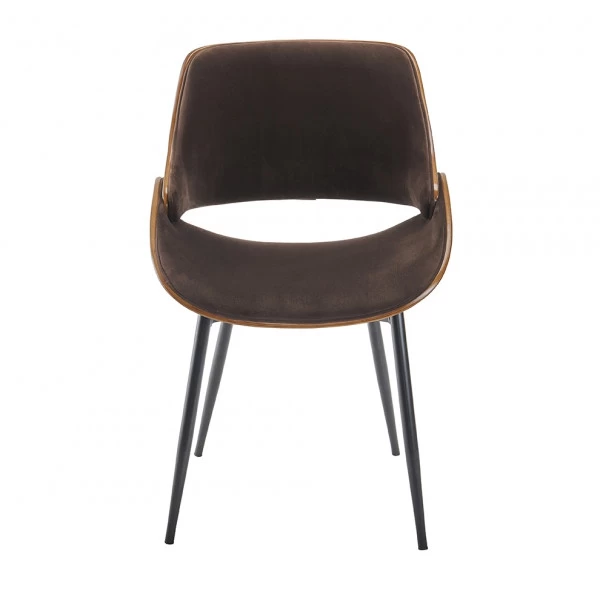La chaise Mannix en velours marron foncé et piètements métal deviendra l’atout branché de votre espace repas.