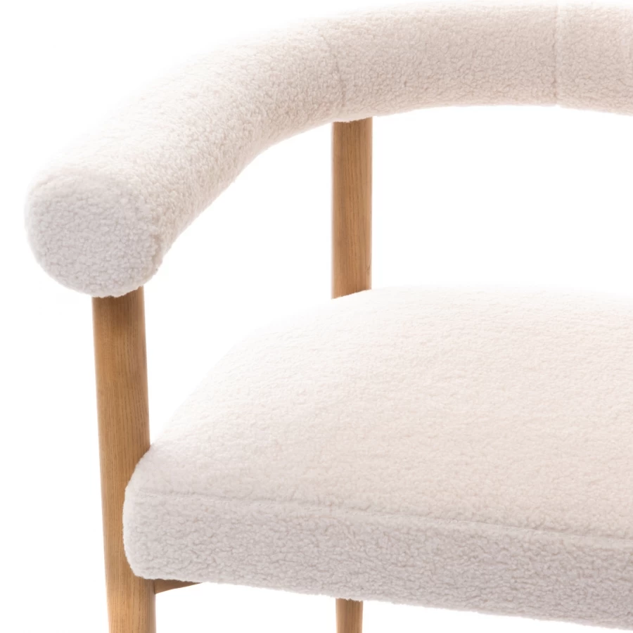 Nouvelle chaise dans la grande tendance de cet hiver avec le modèle Octavia réalisée avec un piètement 4 pieds bois naturel habillé d’un tissu blanc à bouclettes. Cosy et confort assuré.
