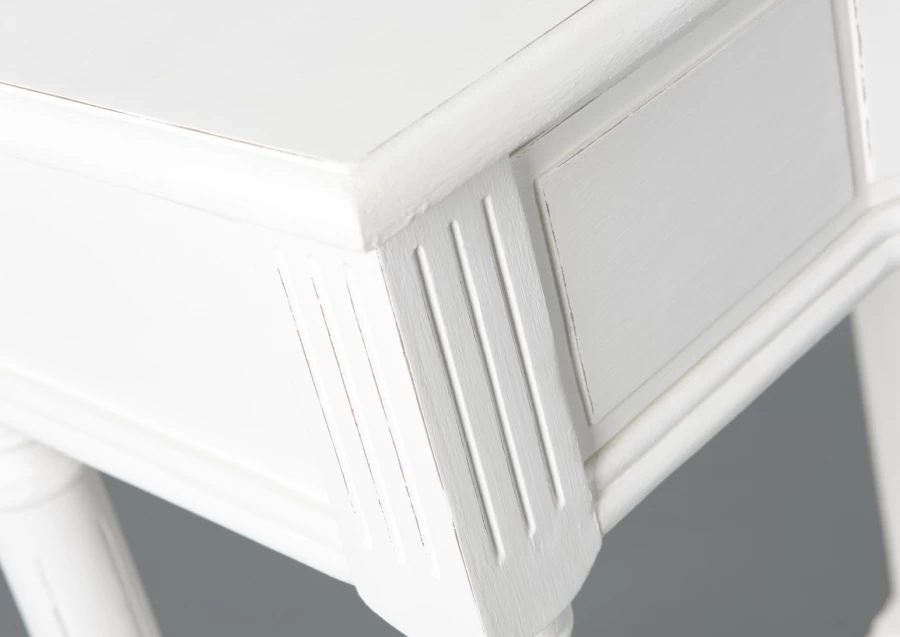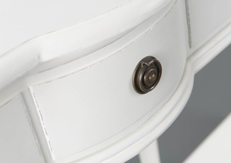 Jolie table de chevet blanche de la collection Agathe réalisée entièrement en bois et proposant 2 tiroirs avec poignées anneaux métal.