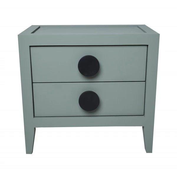 Nouvelle table de chevet de style années 70’s entièrement réalisée en Pin massif patiné. Ce chevet propose 2 grands tiroirs avec poignées boutons en bois noir.
