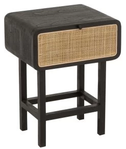 Chevet / Bout de Canapé Molly Bois Noir Rotin Naturel