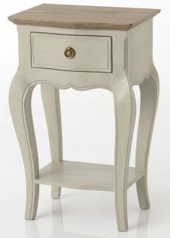 Charmant chevet très chic en 2 tons. Empiètement beige et plateau naturel blanchi.