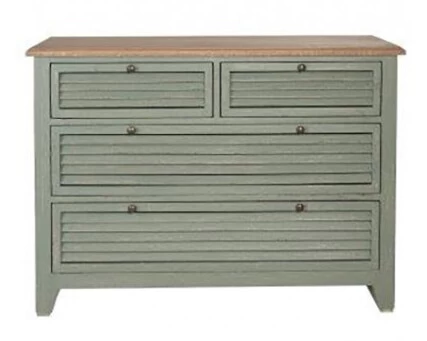 Jolie commode réalisée en pin massif patiné offrant 4 tiroirs style persiennes.