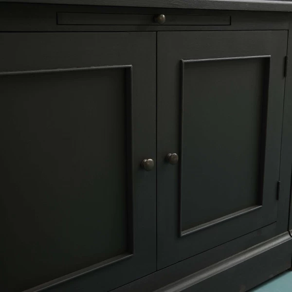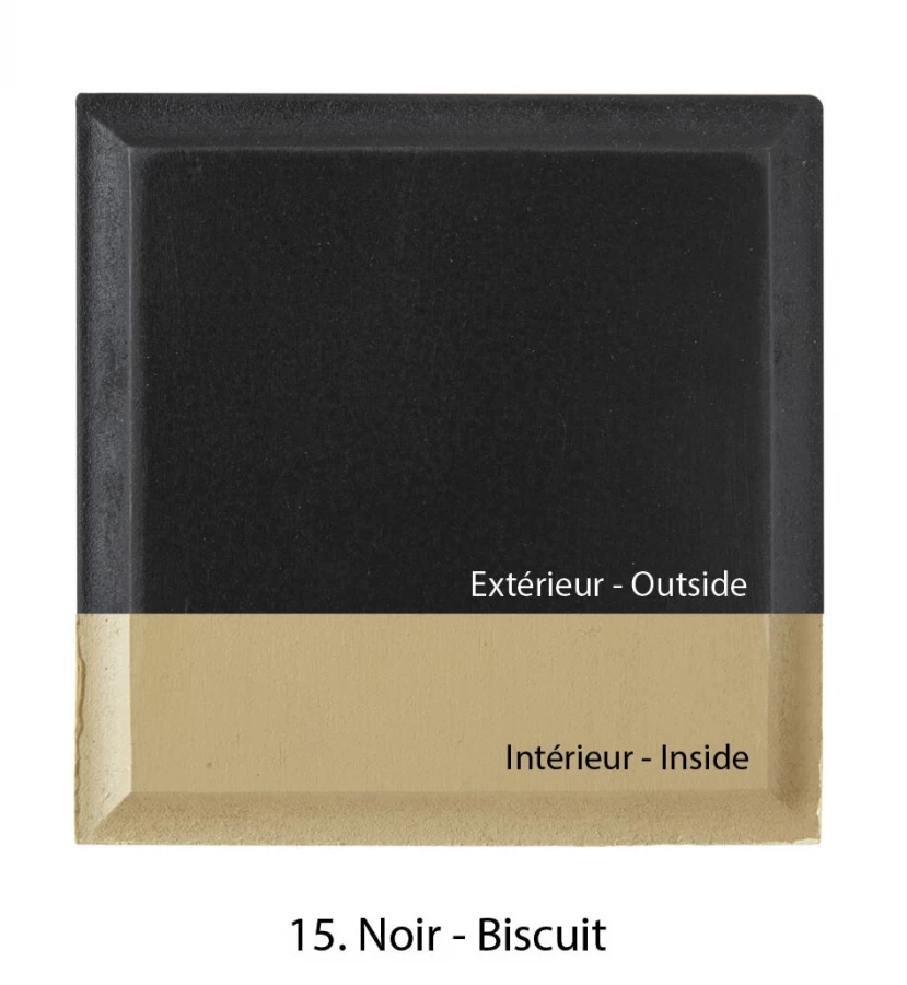Ce modèle : Patine unie Noir pour l’extérieur et Biscuit pour l’intérieur.