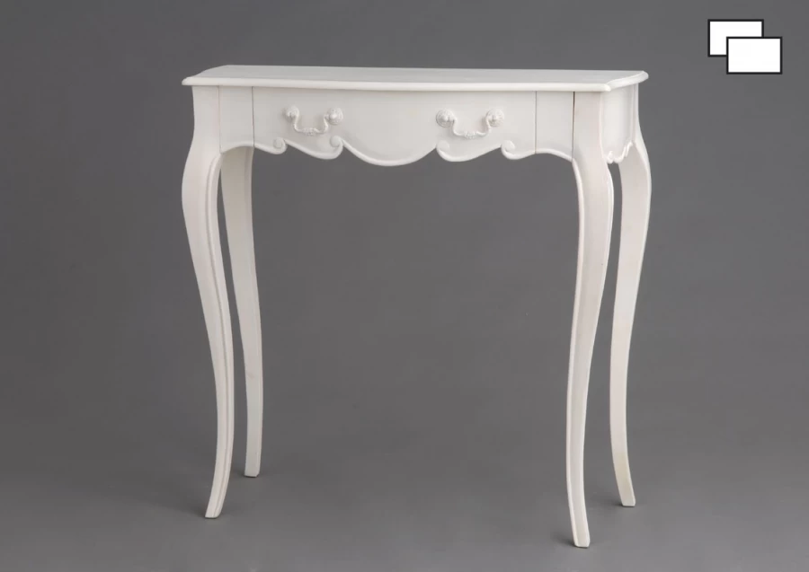 Issue de la collection Apolline, cette petite console est indispensable pour finaliser votre décoration intérieure. Elle offre 1 tiroir avec poignée métal assortie à la patine.