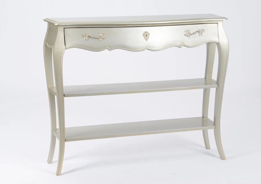Dans la très jolie collection Murano, voici la grande console en bois avec une étagère style Drapier.