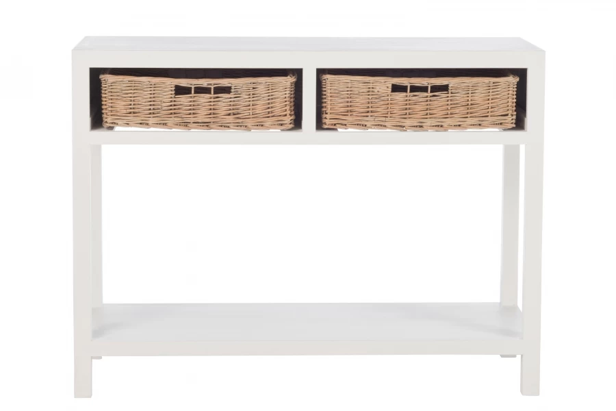 Console Bois Blanc Paniers Osier Jolipa