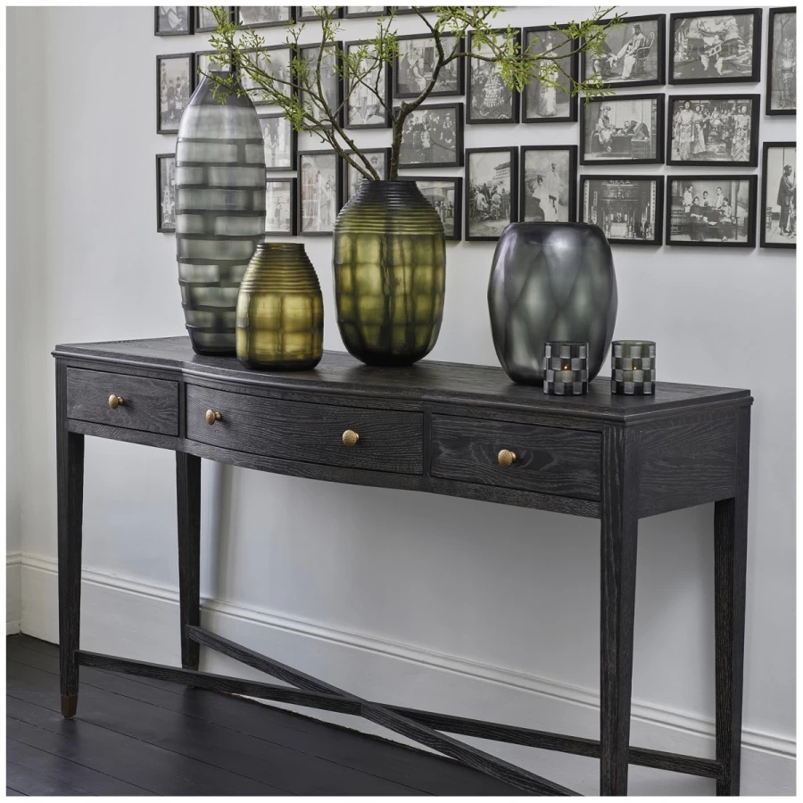 Grâce à ses tiroirs spacieux et son grand plateau, la console INES offre un bel espace de rangement pour toutes vos affaires du quotidien. Ses courbes travaillées et ses détails élégants lui confèrent un style raffiné et plein de charme.