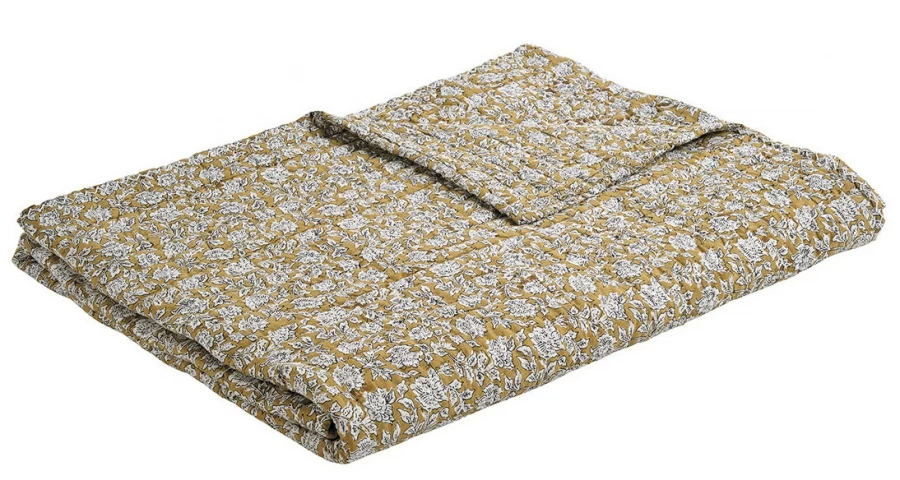 Apportez une touche de poésie et de raffinement à la décoration de votre chambre avec le couvre-lit EDEN, imprimé au block print. Son élégant décor floral et sa couleur safran en feront une pièce maîtresse de votre décoration. Vous pourrez facilement le marier à d’autres coloris et matières, à des unis comme à des imprimés.