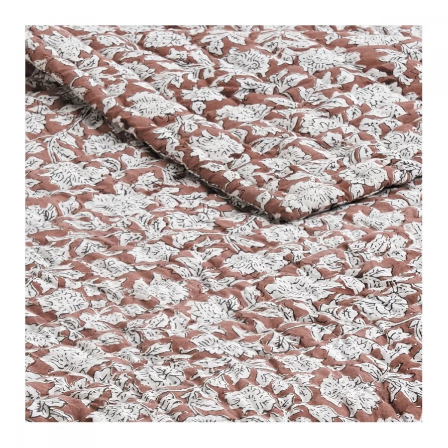 Apportez une touche de poésie et de raffinement à la décoration de votre chambre avec le couvre-lit EDEN couleur Terracotta, imprimé au block print. Son élégant décor floral et sa couleur terracotta en feront une pièce maîtresse de votre décoration. Vous pourrez facilement le marier à d’autres coloris et matières, à des unis comme à des imprimés.