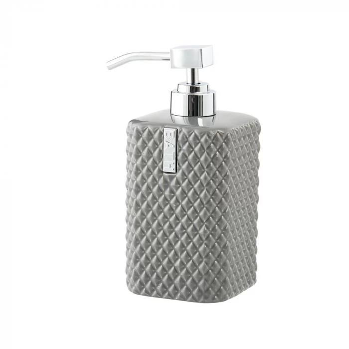 Réalisé en céramique et aluminium argenté, ce distributeur de savon carré habillera avec luxure votre espace de bain.