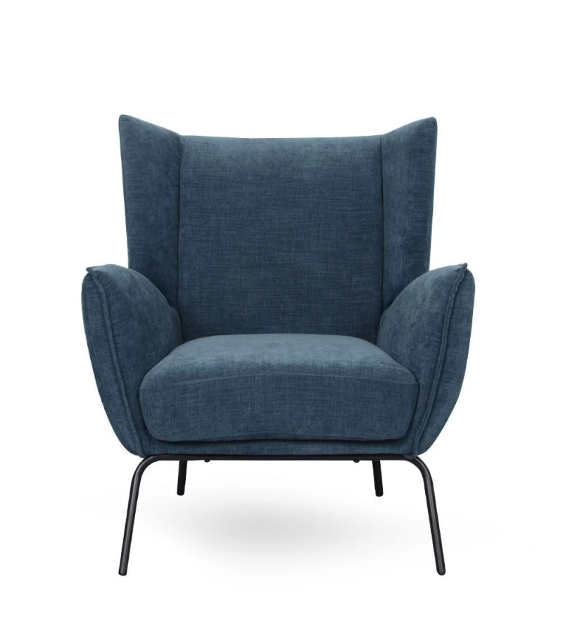 Ce fauteuil grâce à son dossier haut est très confortable. Il est réalisé sur un piètement 4 pieds en métal noir, une structure métal et un habillage en tissu velours très cosy.