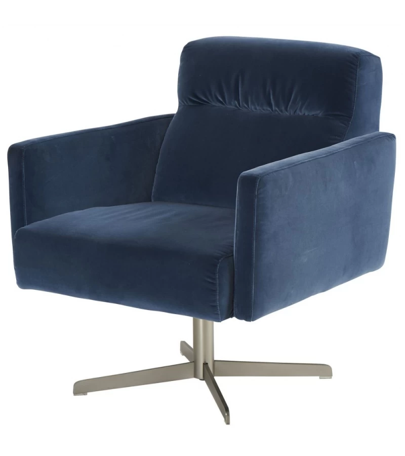 Très chic et confortable fauteuil de bureau ou de salon réalisé en velours sur empiètement métal chromé.