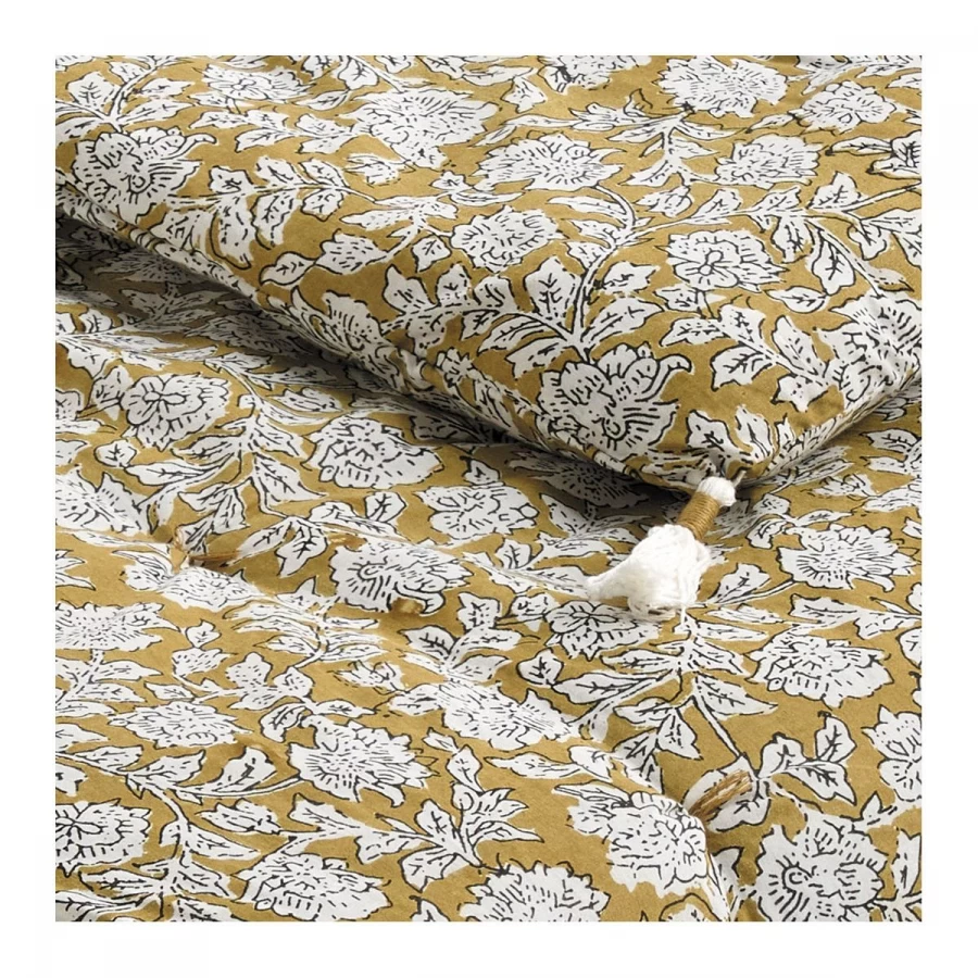 Apportez confort et poésie à votre intérieur avec l’élégant futon EDEN, imprimé au block print. Son décor floral délicat et sa jolie couleur safran en feront une pièce maîtresse de votre décoration. Vous pourrez facilement l’associer avec d’autres coloris et matières, avec des unis comme des imprimés.