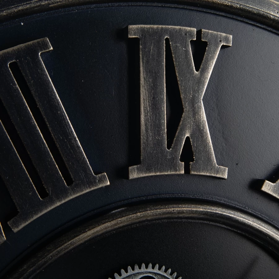 Nouvelle horloge murale ronde en métal style Indus couleur Blue Jean avec mécanisme en mouvement.