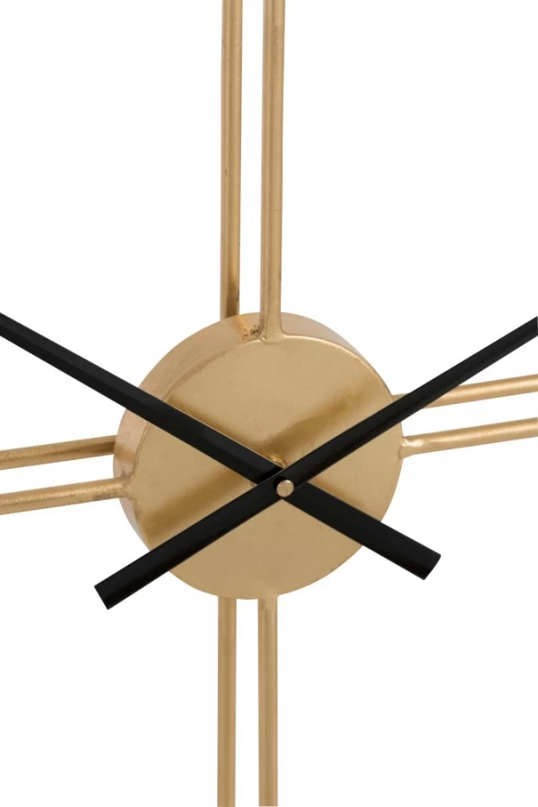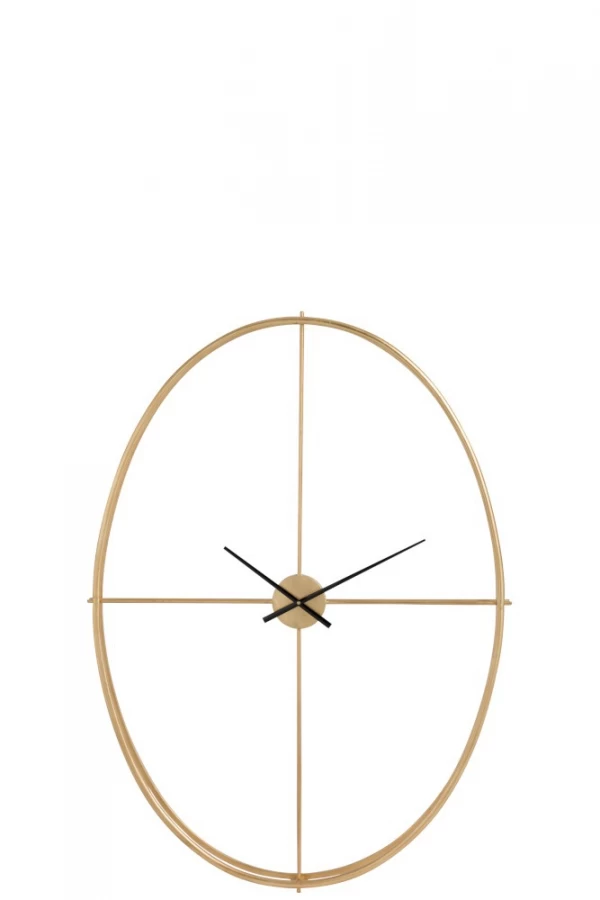 Très grande horloge en métal doré vieilli. Son originalité est apportée par sa forme ovale, sa grande taille et sa finesse.