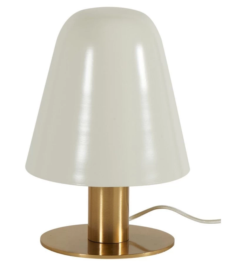 Petite lampe très tendance entièrement réaliée en métal avec le pied doré et l’abat-jour blanc.