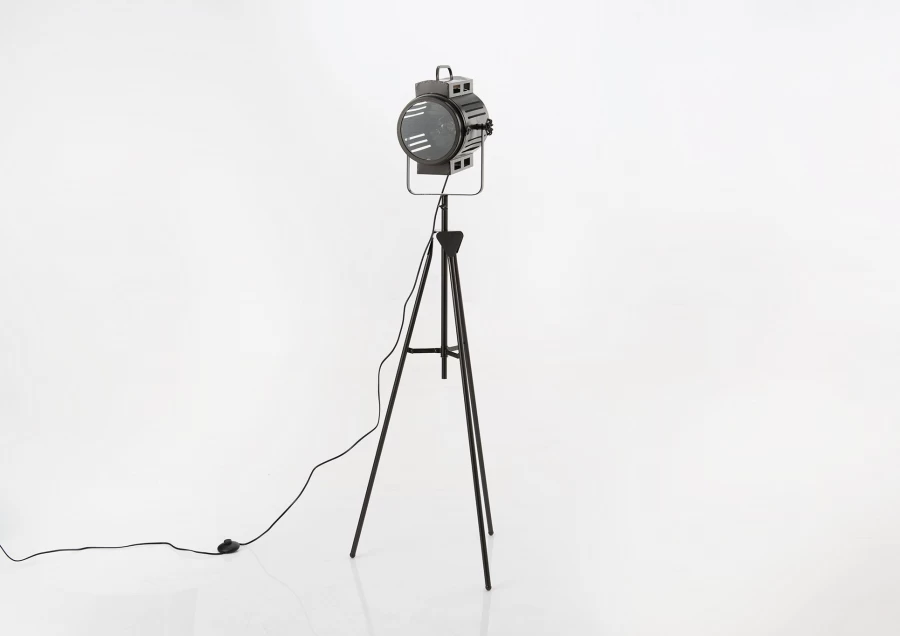 Pour finaliser votre déco en apportant la touche Indus, voici le lampadaire façon spot de cinéma entièrement réalisé en métal noir.