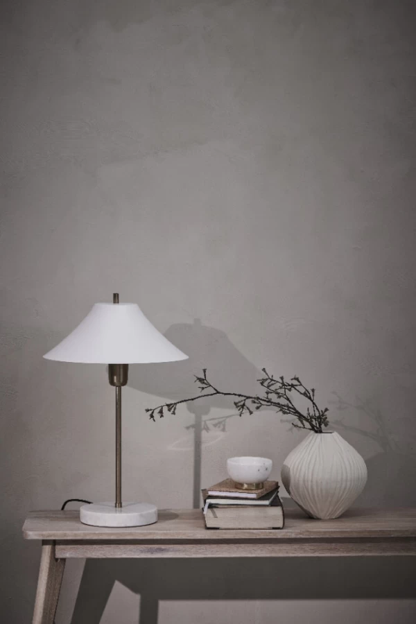 Très chic lampe de table blanche à poser sur une console, un buffet bas ou sur un chevet. Bel embellissement intérieur !