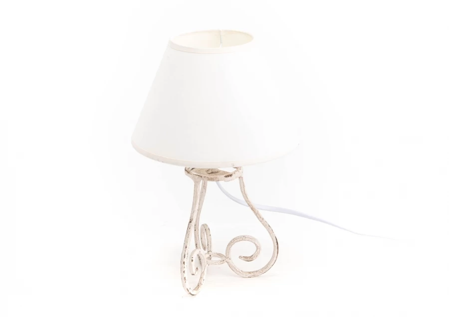 Pied volute en métal blanc vieilli et abat-jour rond blanc ø 18cm