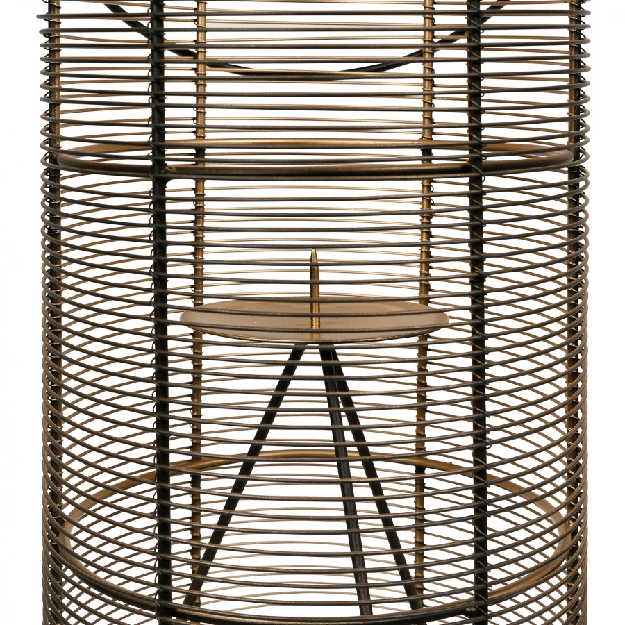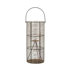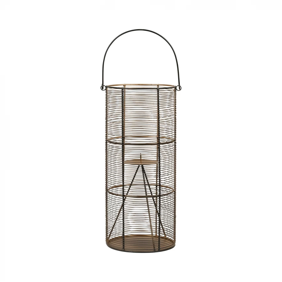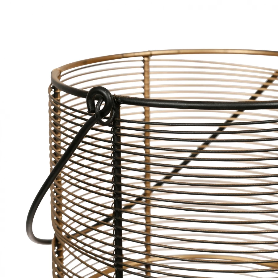 Magnifique lanterne en métal noir et doré à poser au sol dans une entrée ou un salon. Lanterne équipée d’une anse.