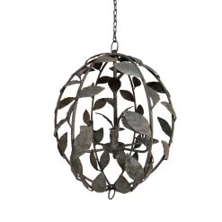 Lustre Suspension Rond Métal Fer Gris Feuilles Empire
