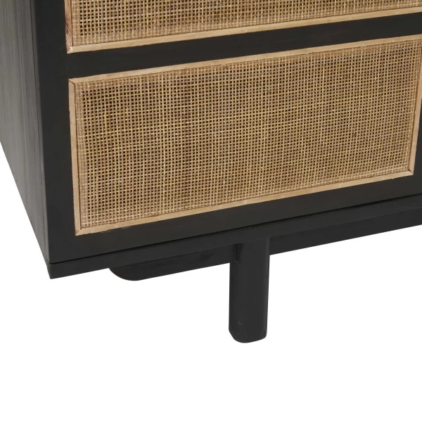 Meuble TV Calvi Noir Bois Cannage