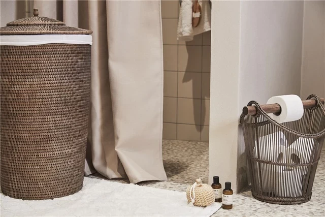 Panier à linge tissé à la main avec des materiaux de haute qualité tel que le saule de la collection Norah. Le bambou et le rotin sont deux plantes, qui poussent rapidement, sont faciles à replanter et constituent un matériau solide pour l’intérieur de la maison.