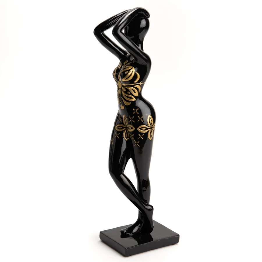 Dans la collection des statuettes colorées voici en nouveauté la femme Alix en position debout. Un joli corps de couleur noir brillant habillé de fleurs dorées, elle sera très remarquée sur une console ou un meuble dans votre intérieur.