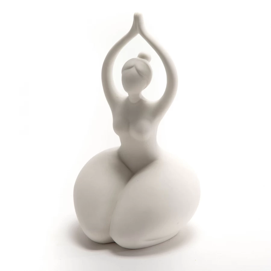 Jolie statue en céramique très tendance d’une femme en position Yoga de couleur blanche. A poser sur une console ou un buffet bas…