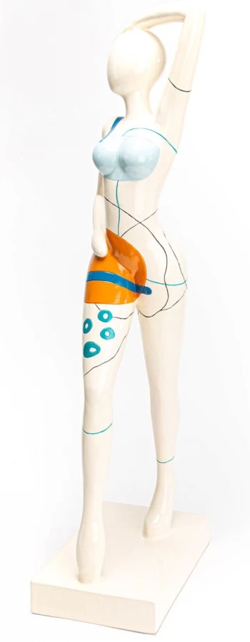 Belle statue de femme en position debout, vétue de couleurs très festives