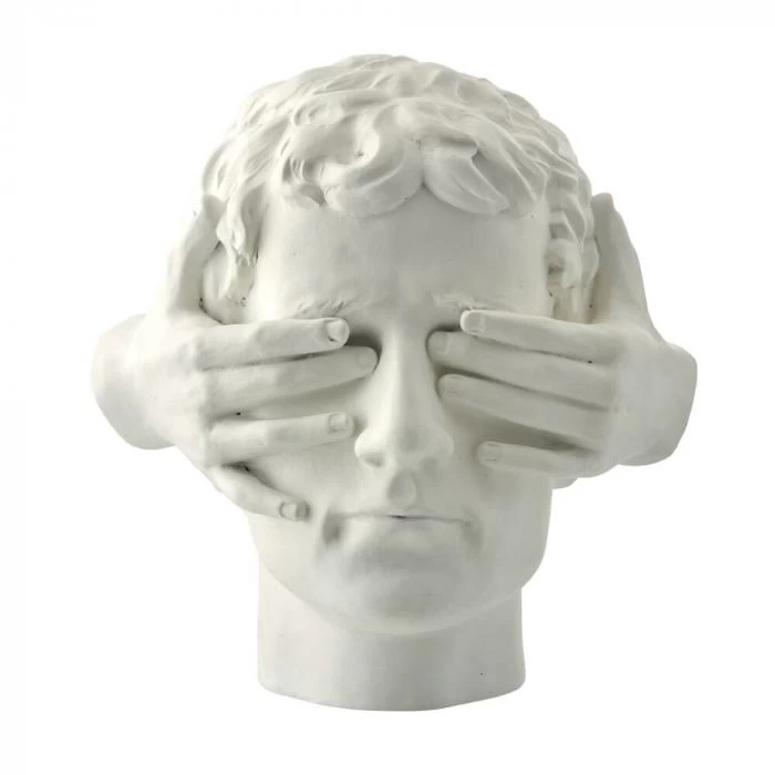 Le modèle « Ne rien voir » présenté ici est réalisé en polyrésine de couleur blanche imitant parfaitement le ciment.
