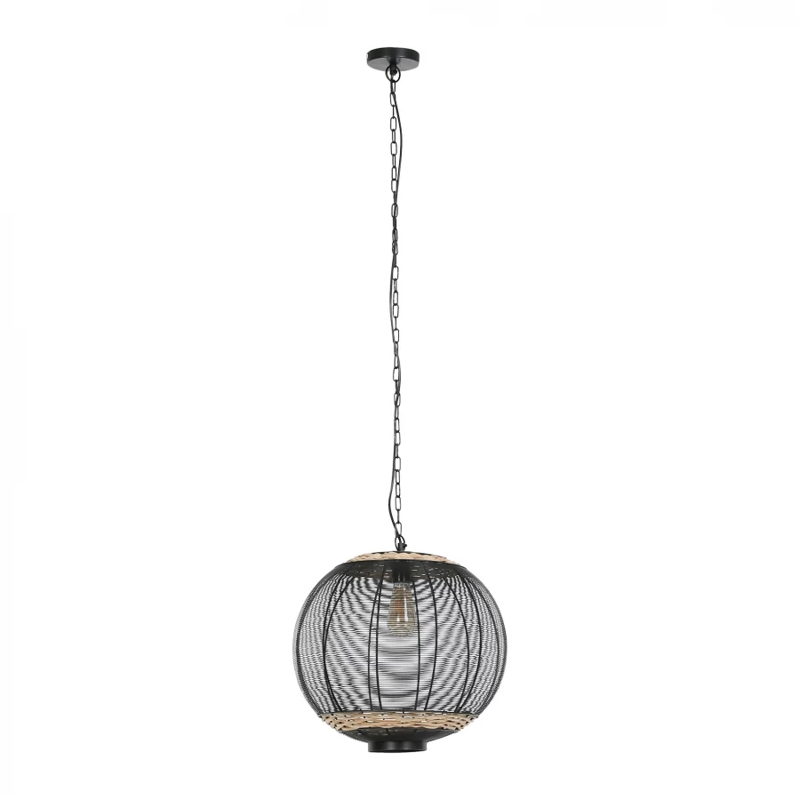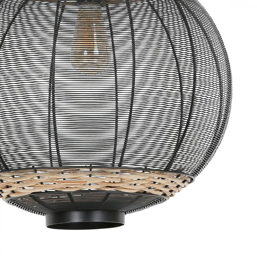 Jolie suspension ronde noire entièrement métal, et légèrement habillée d’un tressage en rotin naturel en haut et en bas du luminaire. Cette suspension trouvera sa place dans une entrée, un couloir, une chambre etc etc…