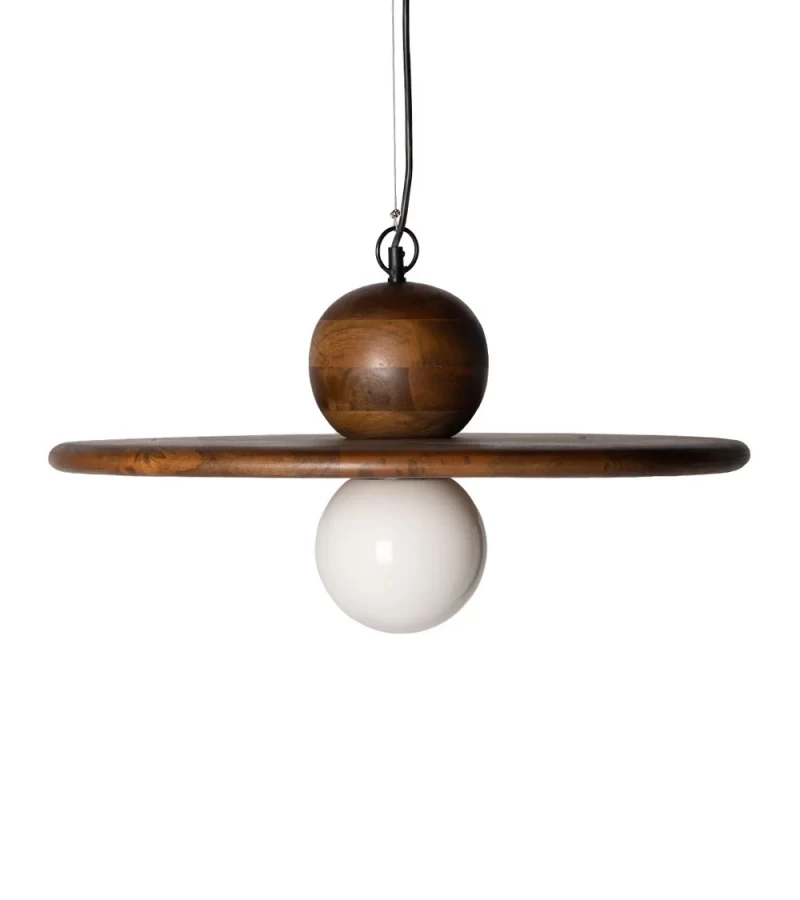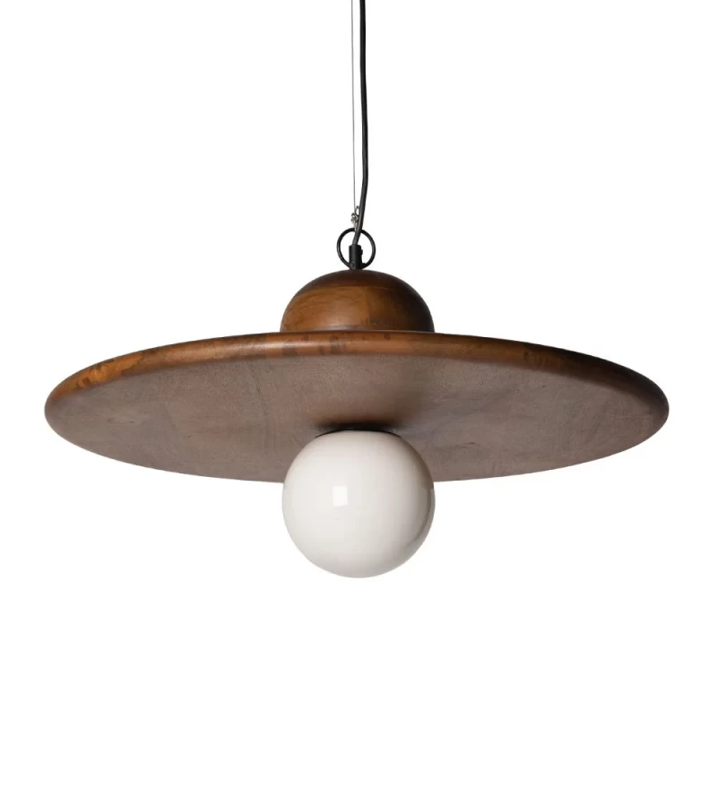 Nouvelle suspension pour la maison réalisée entièrement en bois de manguier teinté et globe en verre.